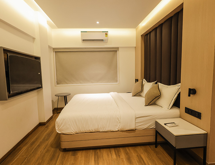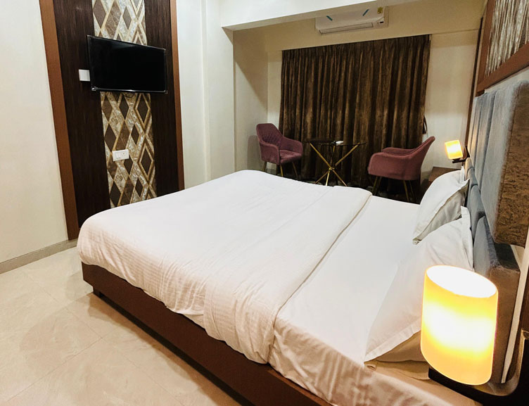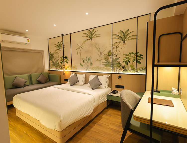The Premium Executive room offers a spacious and premium experience with all modern amenities, featuring a dedicated seating area with a sofa or table and chairs for added comfort, along with a king-size bed with cozy mattresses suitable for comfortable working travelers.