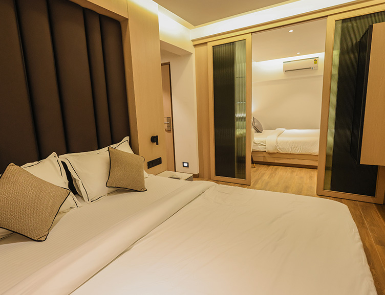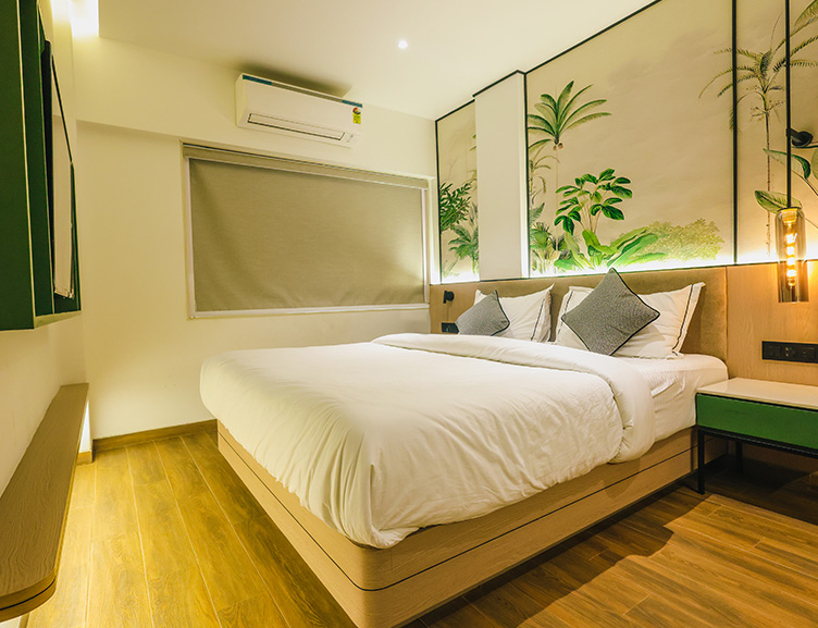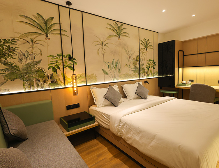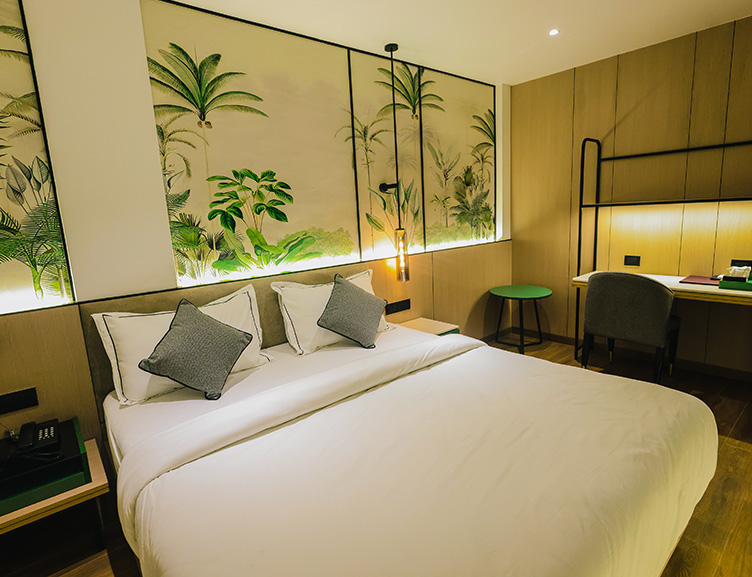The Premium Deluxe Room offers a spacious and elegantly designed environment with a king-size bed, luxury living, and a stunning city or valley view.